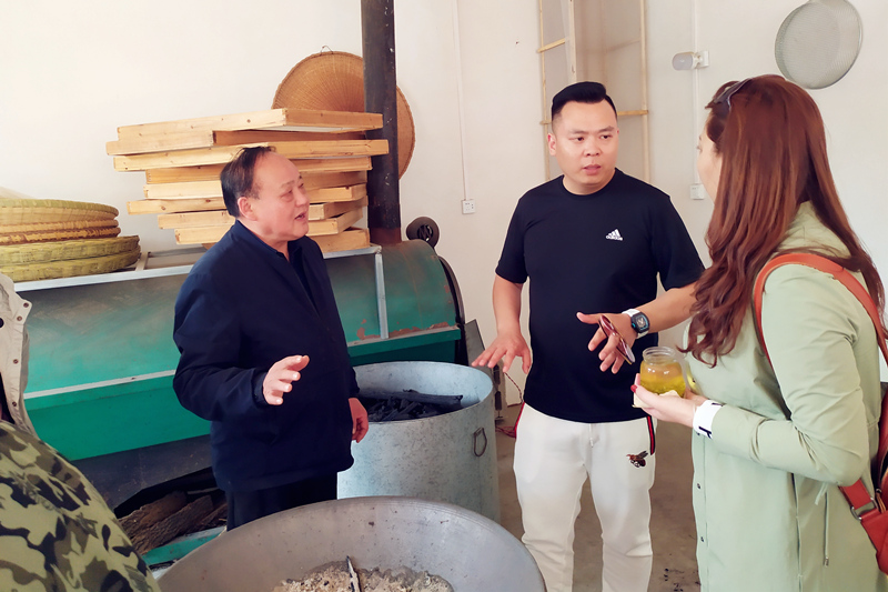 在這個秀美的山村里,周祖宏是個“名人”,他是周氏炒茶家族第四代傳人,憑著一手炒茶絕活,被河南省文化廳評為河南省省級非物質(zhì)文化遺產(chǎn)項目(信陽毛尖茶采制技藝)代表性傳承人。洛陽開元集團一行來到周老師家里,董事長許明月與周老師親切交談,對制茶、品茶、信陽茶文化等一系列問題做了相互交流。在手工茶坊里集團員工們也興致高昂地觀摩了炒茶師傅高超的手藝,手工炒茶可以使茶的營養(yǎng)成分更高,口感上偏濃,更加耐泡。大家品的是茶,吐出的是都市的困頓與繁雜。在300余畝的茶園中,縷縷茶香沁人心脾,在采茶工的引領(lǐng)下,全體員工愜意自得地體驗采茶的樂趣。